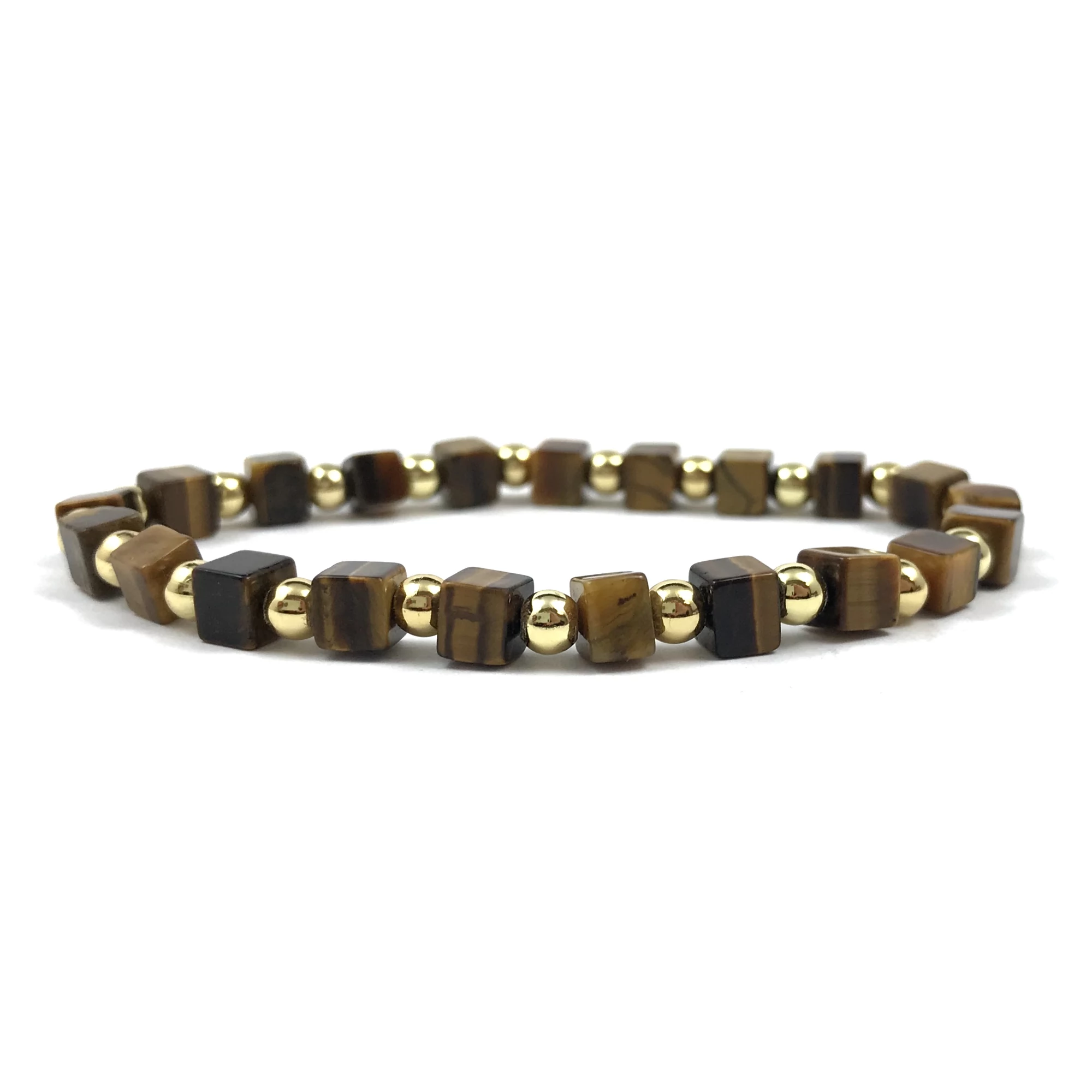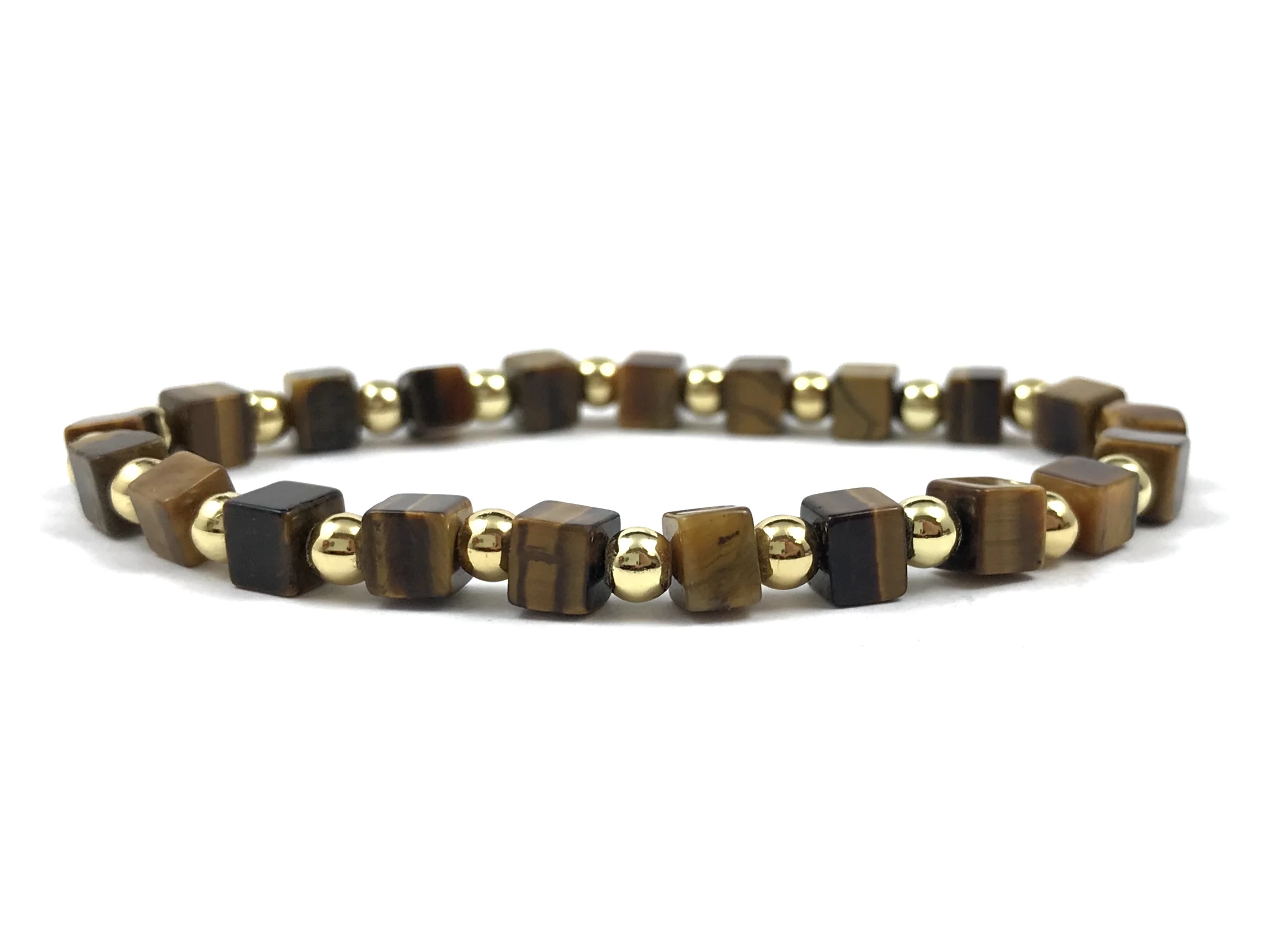 Tigrisszem kocka arany gyöngy karkötő