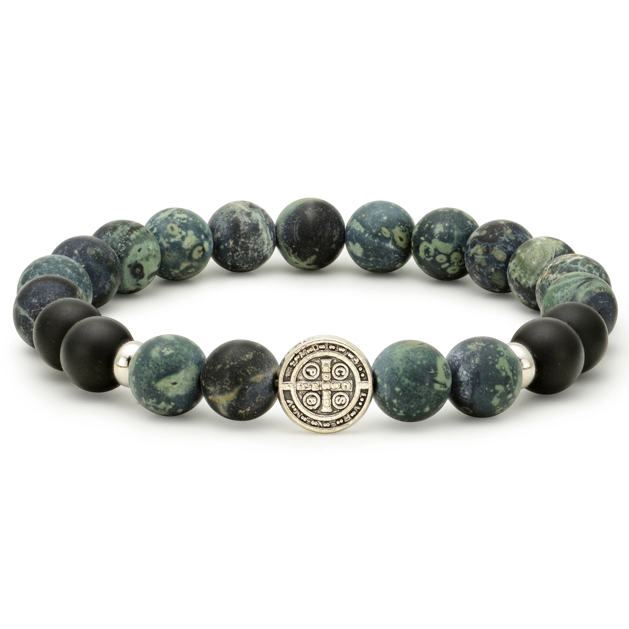 A karkötőben lévő Szent Benedek medál, védelmet nyújt számodra , a negatív gondolatokkal és energiákkal szemben. Visszafordítja a rosszindulatot és az átkokat. Az ékszer természetes gyöngyökből kézzel készül, így mintázatuk, színük minimálisan eltérő lehet, a kép csak illusztráció. A karkötők méretét az alábbiak szerint válaszd ki a listából: Mérd meg a csuklód szorosan, és a kapott mérethez adj 1cm-t. Pl: ha a csuklód mérete 16cm, akkor neked 17cm a karkötő méreted.