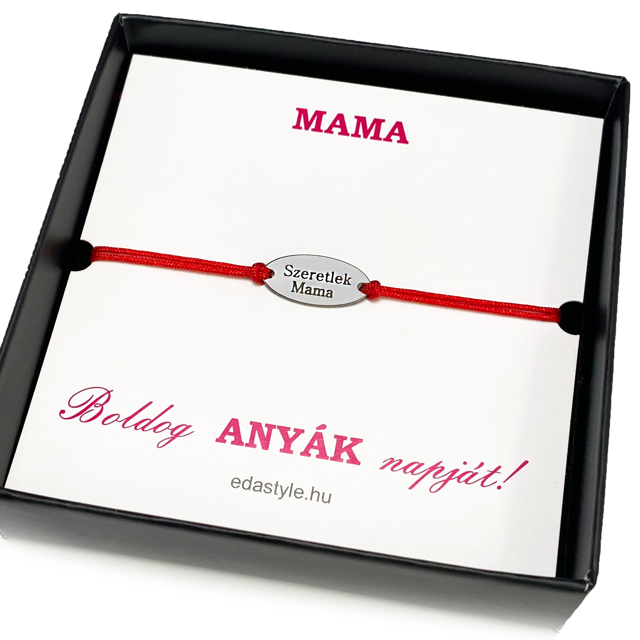 Szeretlek Mama gravírozott acél medálos piros zsineg karkötő