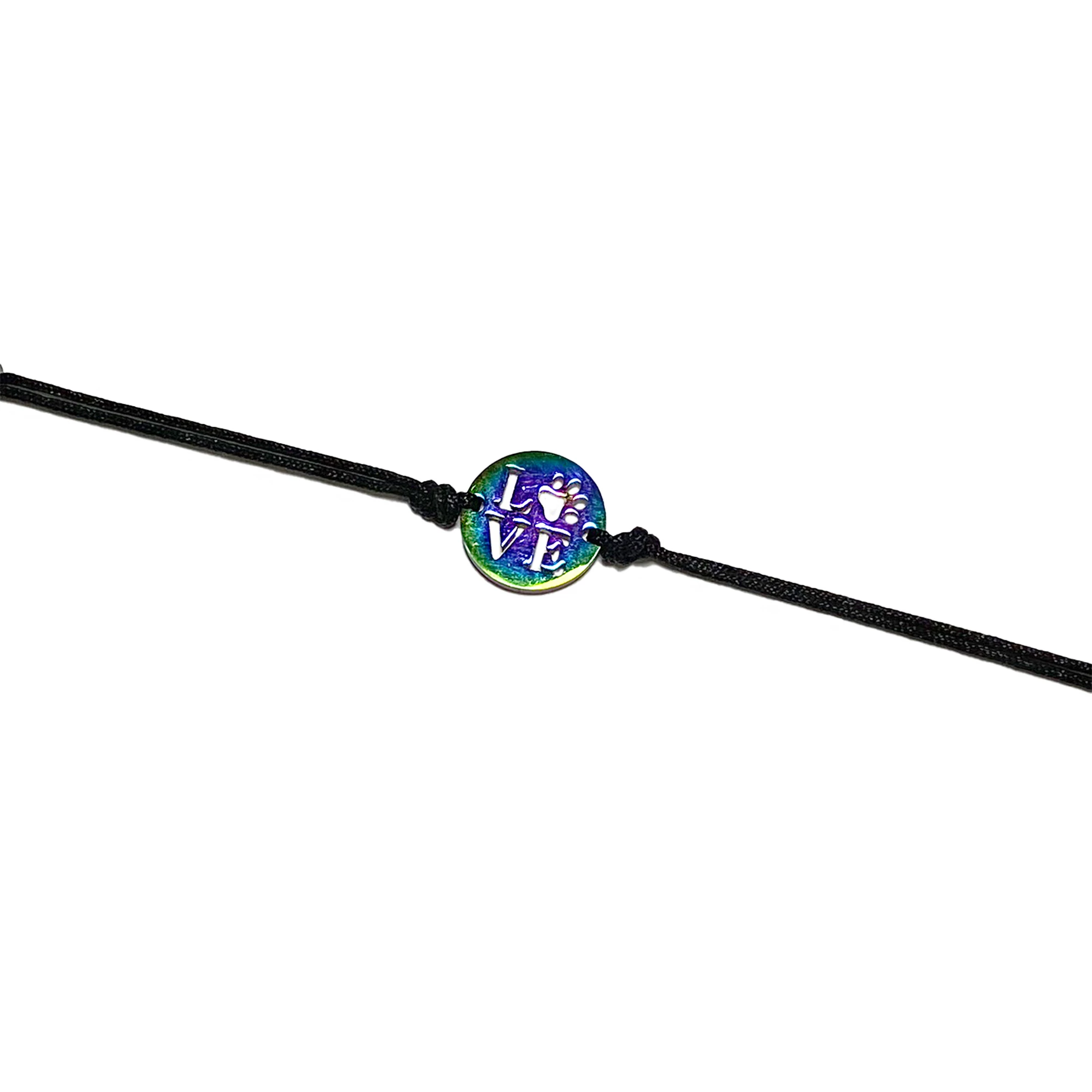 Szivárvány acél love tappancs medálos zsineg karkötő