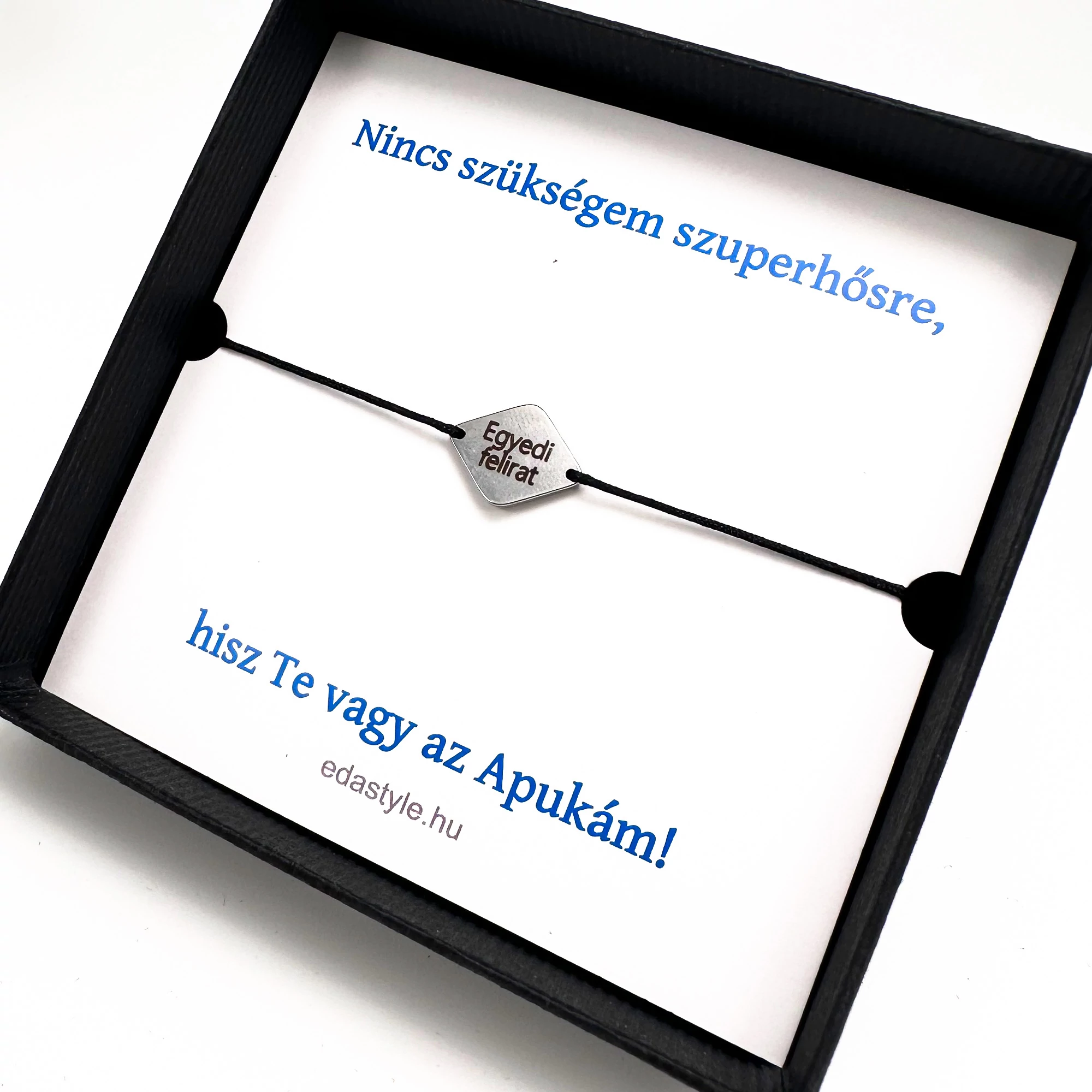 Szuperhős zsineg karkötő gravirozható rombusz medállal Fekete
