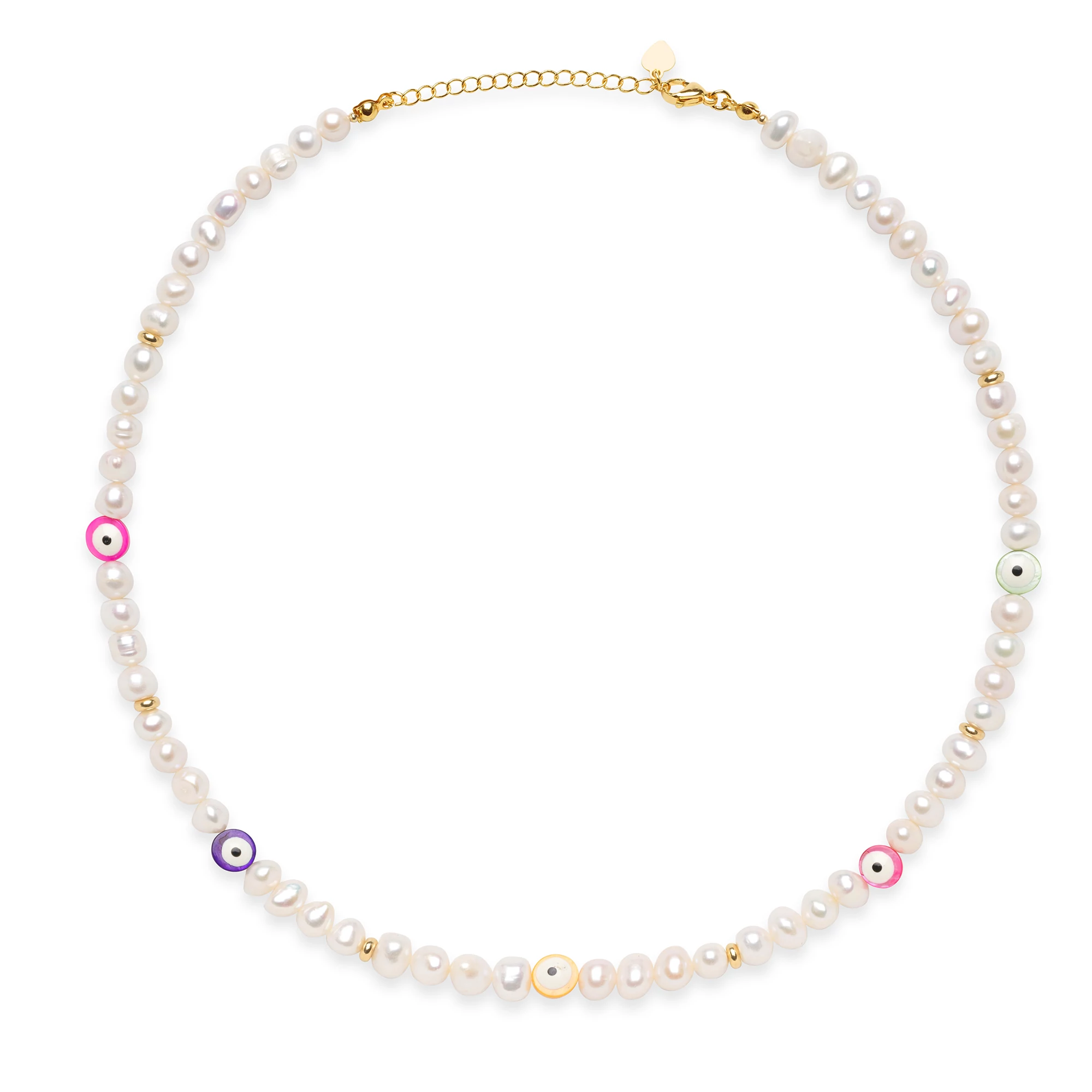 Anyaga: Édesvizi tenyésztett gyöngy, acél Gyöngy méret: 6-7mm Lánc hossz: 35cm + 6cm bővíthető |