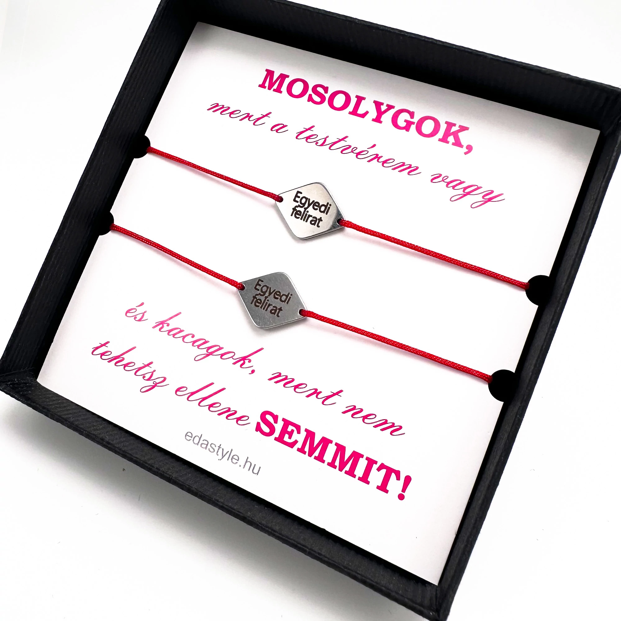 Testvér karkötő EGYEDI gravírozott rombusz medállal Piros
