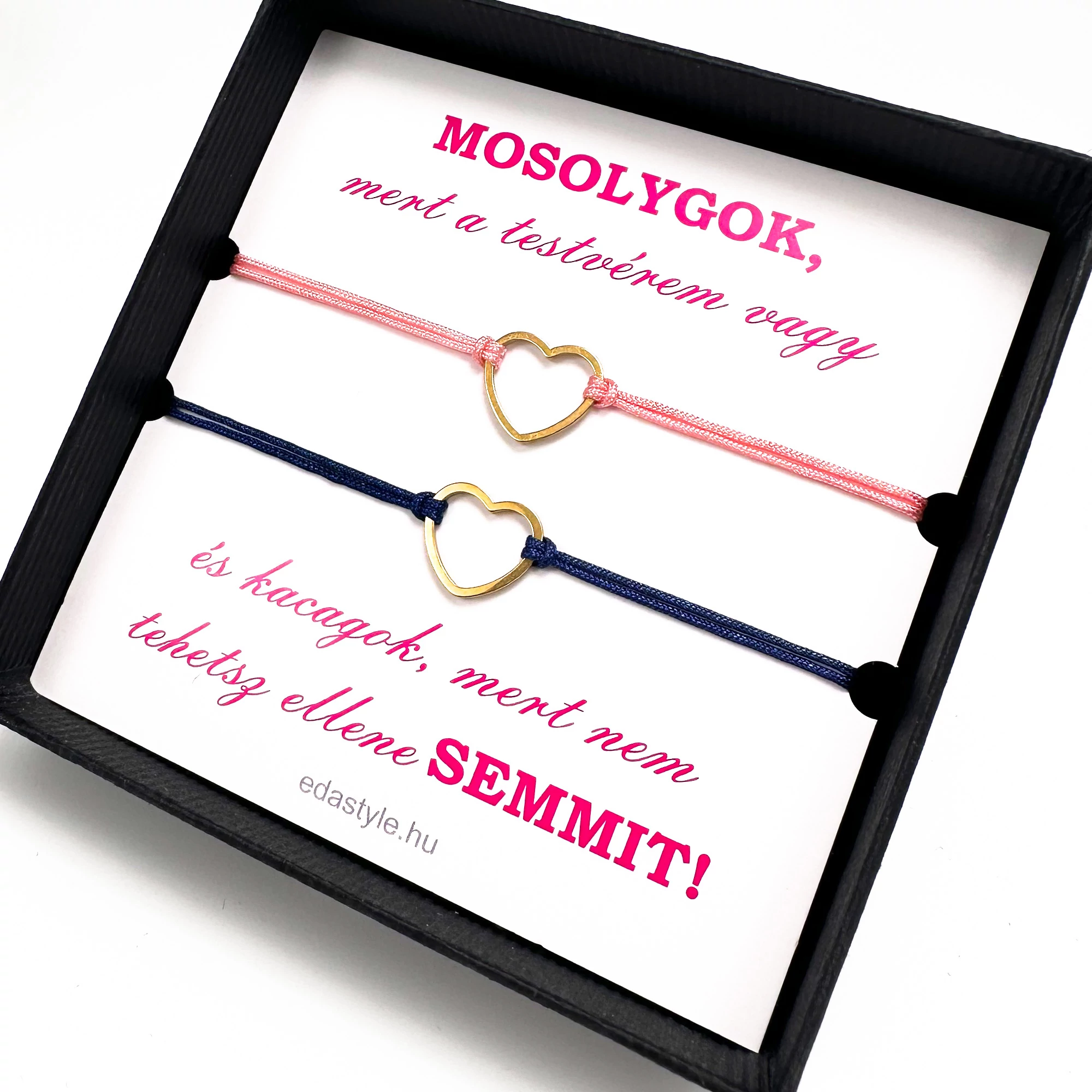Testvér zsineg karkötő arany szív medállal Rózsaszín-Kék