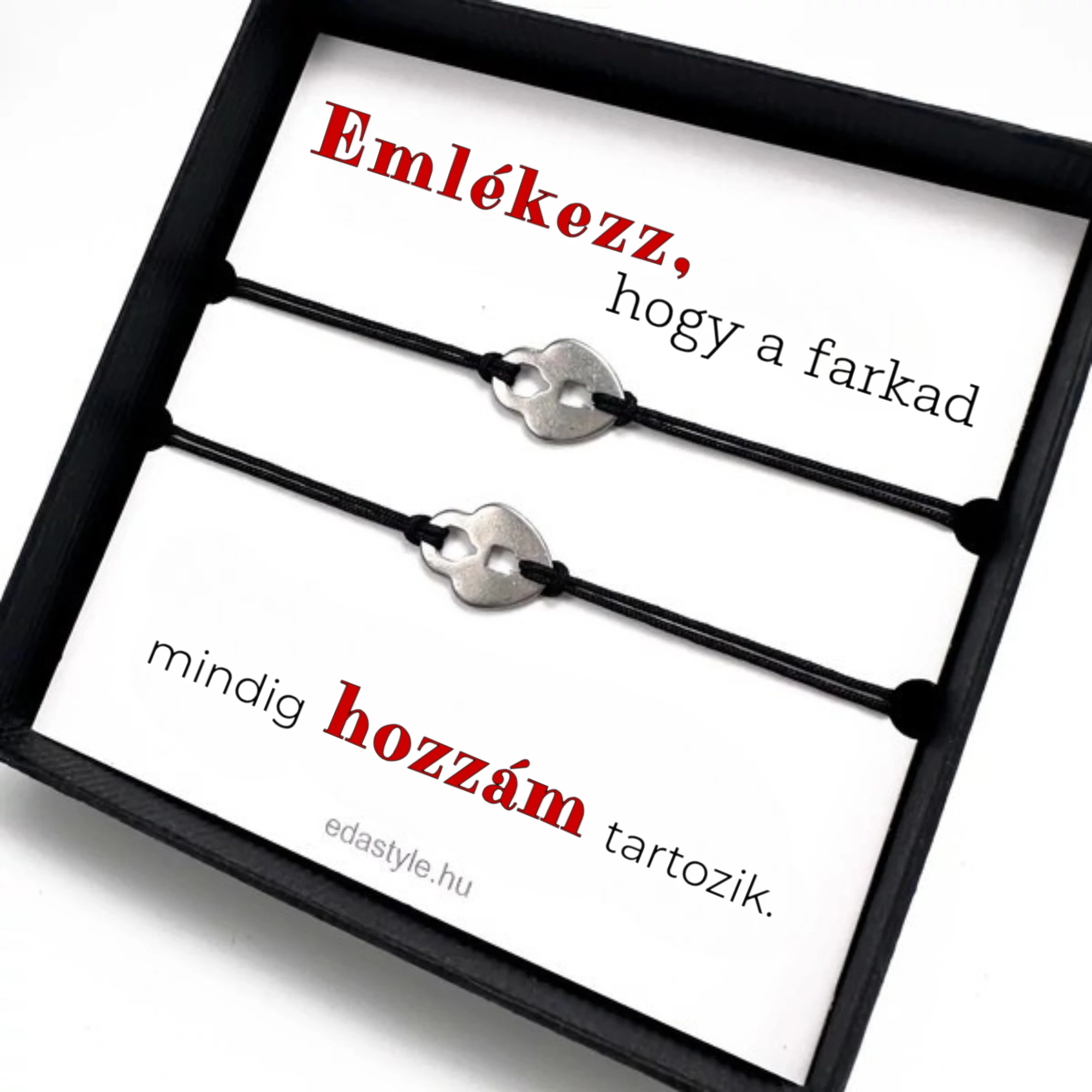 Hozzám tartozol Páros karkötő lakat medállal Fekete