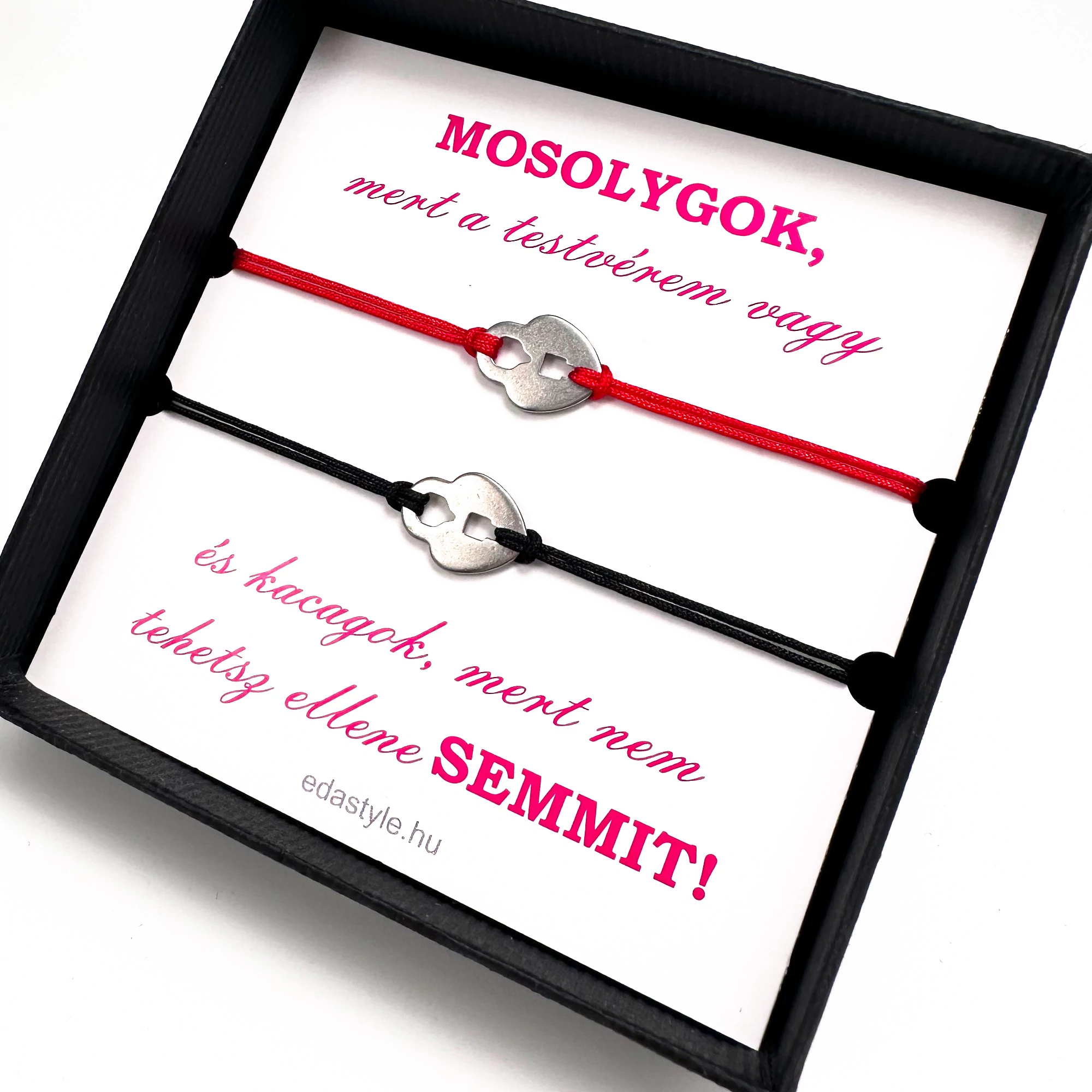 Testvér zsineg karkötő lakat medállal Piros-Fekete