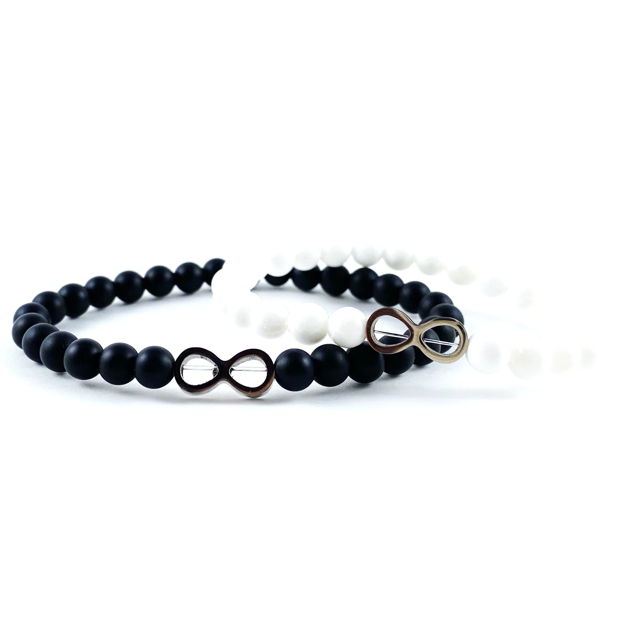 Ezüst végtelen jeles ónix és gyöngyház páros karkötő