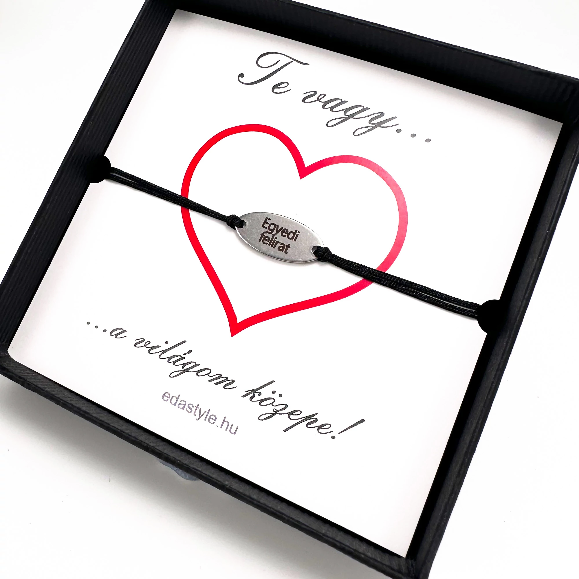 Világom közepe... karkötő gravirozható ovál medállal Fekete