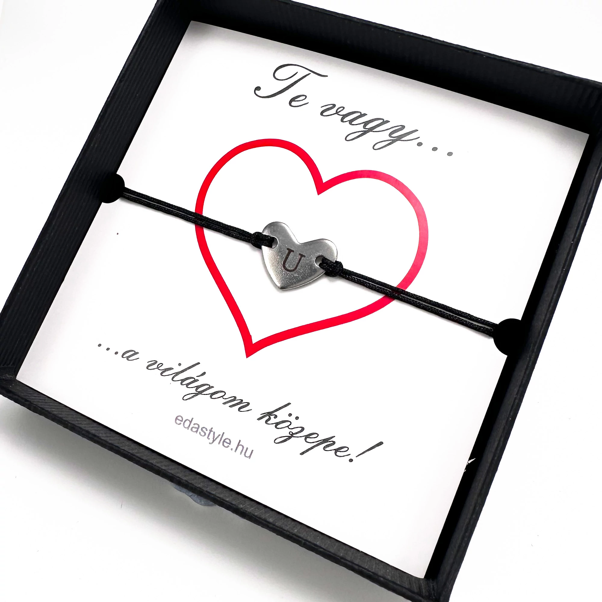 Világom közepe... karkötő gravírozható szív medállal Fekete