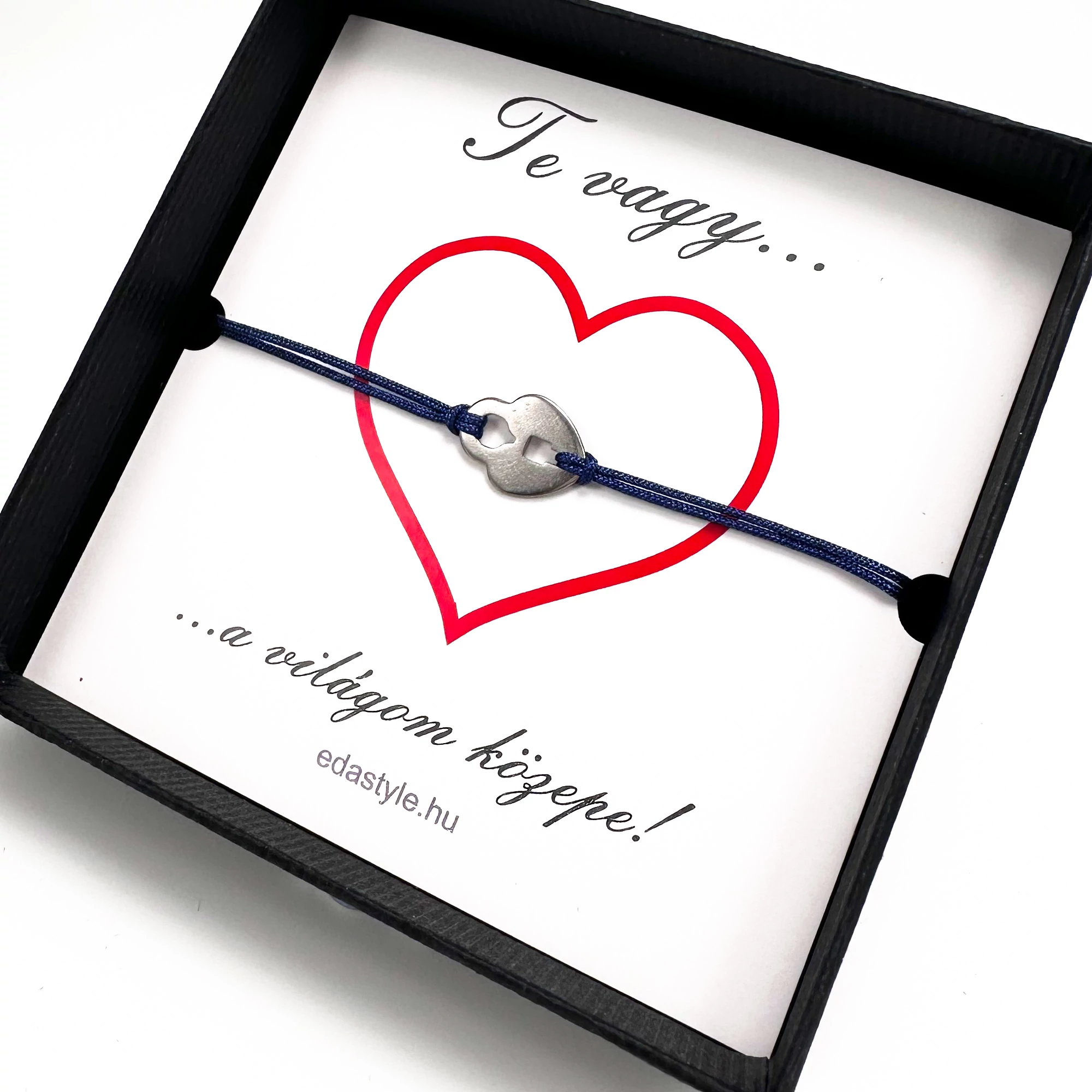 Világom közepe... zsineg karkötő lakat medállal Kék