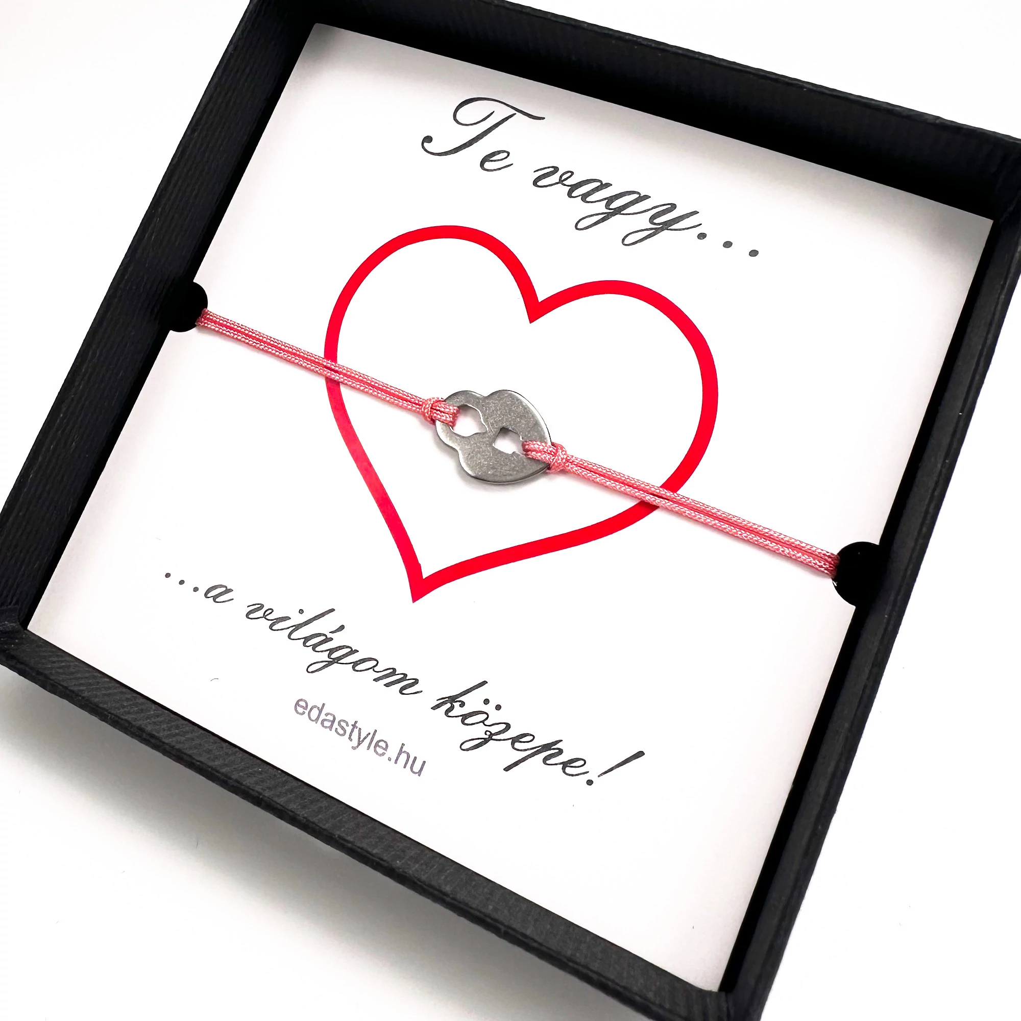Világom közepe... zsineg karkötő lakat medállal Rózsaszín